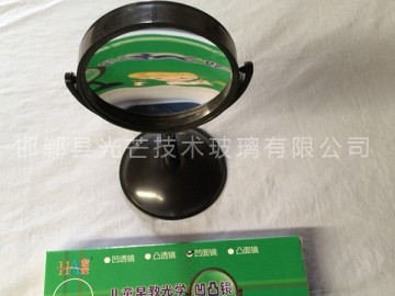 帶底座凹透鏡 直徑:10厘米 焦距:負300mm 幼兒園小朋友 或者中小學(xué)生認識凹透鏡的特點 學(xué)習(xí)凹透鏡光學(xué)原理的的器材 尺寸大也時候教師教學(xué)演示用教具 知識拓展閱讀: 凸透鏡與凹透鏡可以從以下幾個方面加以區(qū)別:外形特征、對光線的作用、成像特點及用途等。具體方法如下: 方法一:用手摸,鏡子的中央部分比邊緣厚的是凸透鏡,鏡子的中央部分比邊緣薄的是凹透鏡。 方法二:隔著鏡子觀察距鏡子較近的書上的字,有放大作用的是凸透鏡;字變小的是凹透鏡。 方法三:隔著鏡子觀察距鏡子較近的書上的字,移動鏡子,若發(fā)現(xiàn)像的移動方向總是與鏡子的移動方向相同,則該鏡子是凹透鏡;若發(fā)現(xiàn)像的移動方向總是與鏡子的移動方向相反,則該鏡子是凸透鏡。 方法四:隔著鏡子觀察窗外的物體,若能看到上下左右都顛倒的像,這種鏡子是凸透鏡;若看到像是正立的,這種鏡子是凹透鏡。 方法五:將點燃的蠟燭放在離透鏡適當距離處,在另一側(cè)光屏上能得到倒立實像的是凸透鏡;無論怎樣調(diào)節(jié),在另一側(cè)光屏上不能得到像的是凹透鏡。 方法六:讓鏡子正對太陽光照射,在鏡子的另一側(cè)放一張與透鏡平行的白色卡片紙,耐心調(diào)節(jié)鏡子與紙之間的距離,能得到一個小亮點的是凸透鏡;始終不能獲得小亮點的是凹透鏡。 方法七:觀察陽光通過了兩副眼鏡在地面上形成的光斑,若形成光斑的中間比四周明亮,則鏡子是凸透鏡;若形成光斑的中間比四周暗,則鏡子是凹透鏡。 方法八:近視眼鏡,是用凹透鏡做成的。老花鏡,是用凸透鏡做成的。 說明:辨別凸透鏡與凹透鏡有好多方法,哪種方法好,要視具體情況而定。例如,如果待辨別透鏡的中央與邊緣的厚薄差異不明顯,就不能用“摸”的方法(況且精密光學(xué)儀器是不允許直接用手去摸的);在有太陽光與沒有太陽光的場合,所選的方法也不同??傊?,一種好方法,應(yīng)該簡便、易行、有效。它是隨場合變化而變化的,不宜一概而論。 技巧:當你想要判別兩件事物的相同和不同之處時,就需要用比較與對比的方法。比較就是找出事物的相似性,即共同特征。對比是找出事物的不同點。用這種方法來分析事物,能幫助你發(fā)現(xiàn)一些平時容易忽略的細節(jié)。
