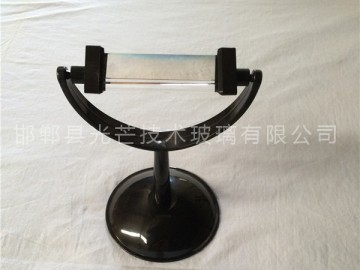 三棱鏡是光學(xué)棱鏡中的一種形式,在外觀上呈現(xiàn)幾何的三角形,是光學(xué)棱鏡中最常見,也是一般人所熟知的,但并不是最常用到的棱鏡。三棱鏡最常用于光線的色散,這是將光線分解成為不同的光譜成分。利用不同波長(zhǎng)的光線因?yàn)檎凵渎什煌谡凵鋾r(shí)會(huì)偏轉(zhuǎn)不同的角度,便會(huì)造成色散的現(xiàn)象。這種效應(yīng)也被用來(lái)對(duì)棱鏡物質(zhì)進(jìn)行高精密度的折射系數(shù)測(cè)量。 物質(zhì)的折射系數(shù)固然在不同的波長(zhǎng)會(huì)有所不同,但有些物質(zhì)的折射系數(shù)對(duì)波長(zhǎng)的變化比其他物質(zhì)強(qiáng)烈(色散非常明顯)。通常,BK7玻璃的色散較低,LaSF11玻璃的色散就很明顯,因此更適宜做為色散用的棱鏡。 棱鏡的頂角(在上圖中,上面的角)能夠影響到棱鏡色散時(shí)的特性。通常,要適當(dāng)?shù)倪x擇光線射入的角度和射出的角度,當(dāng)角度接近布儒斯特角(Brewster angle)時(shí),在折射時(shí)造成的損耗最小。 一束白光會(huì)分出不同顏色,一般就分為七種顏色,即紅、橙、黃、綠、藍(lán)、靛和紫。它是由透明材料作成的截面呈三角形的光學(xué)儀器,也叫“棱鏡”光學(xué)上用橫截面為三角形的透明體叫做三棱鏡,光密媒質(zhì)的棱鏡放在光疏媒質(zhì)中(通常在空氣中),入射到棱鏡側(cè)面的光線經(jīng)棱鏡折射后向棱鏡底面偏折。光從棱鏡的一個(gè)側(cè)面射入,從另一個(gè)側(cè)面射出,出射光線將向底面(第三個(gè)側(cè)面)偏折,偏折角的大小與棱鏡的折射率,棱鏡的頂角和入射角有關(guān).白光是由各種單色光組成的復(fù)色光;同一種介質(zhì)對(duì)不同色光的折射率不同;不同色光在同一介質(zhì)中傳播的速度不同.所以,因?yàn)橥环N介質(zhì)對(duì)各種單色光的折射率不同,所以通過三棱鏡時(shí),各單色光的偏折角不同。因此,白色光通過三棱鏡會(huì)將各單色光分開,形成紅.橙.黃.綠.藍(lán).靛.紫七種色光即色散。 1666年,英國(guó)物理學(xué)家牛頓做了一次非常著名的實(shí)驗(yàn),他用三棱鏡將太陽(yáng)白光分解為紅、橙、黃、綠、藍(lán)、靛、紫的七色色帶。據(jù)牛頓推論:太陽(yáng)的白光是由七色光混合而成,白光通過三棱鏡的分解叫做色散,彩虹就是許多小水滴為太陽(yáng)白光的色散. 白光是由各種單色光組成的復(fù)色光;同一種介質(zhì)對(duì)不同色光的折射率不同;不同色光在同一介質(zhì)中傳播的速度不同 。因?yàn)橥环N介質(zhì)對(duì)各種單色光的折射率不同,所以通過三棱鏡時(shí),各單色光的偏折角不同。因此,白色光通過三棱鏡會(huì)將各單色光分開,即色散。